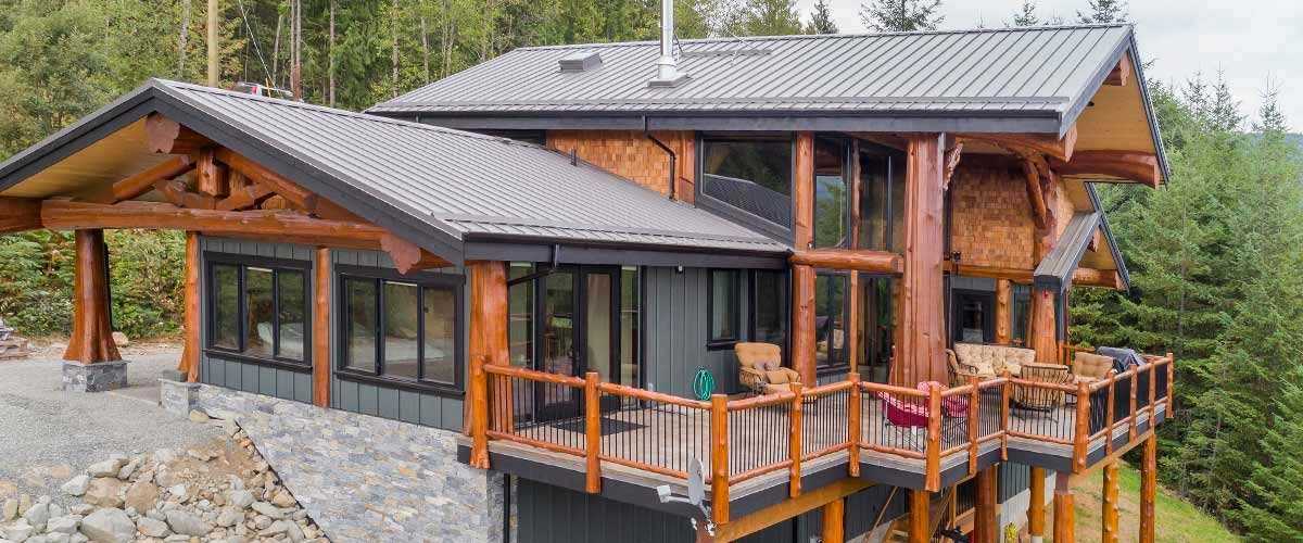 Strata style post and beam brings custom features to the inside of the home, while the outside of the home meets strata design requirements. A home with that cottage curb side appeal may not be allowed on your building site because of exterior strata design criteria. Neighbourhoods that have covenants, conditions and restrictions on buildings can result in some limitations when it comes to building your dream home. Regardless of planned developments and strata hurdles, we can create a structure that meets strata requirements but also achieves your desire to live in a unique log home on the inside.